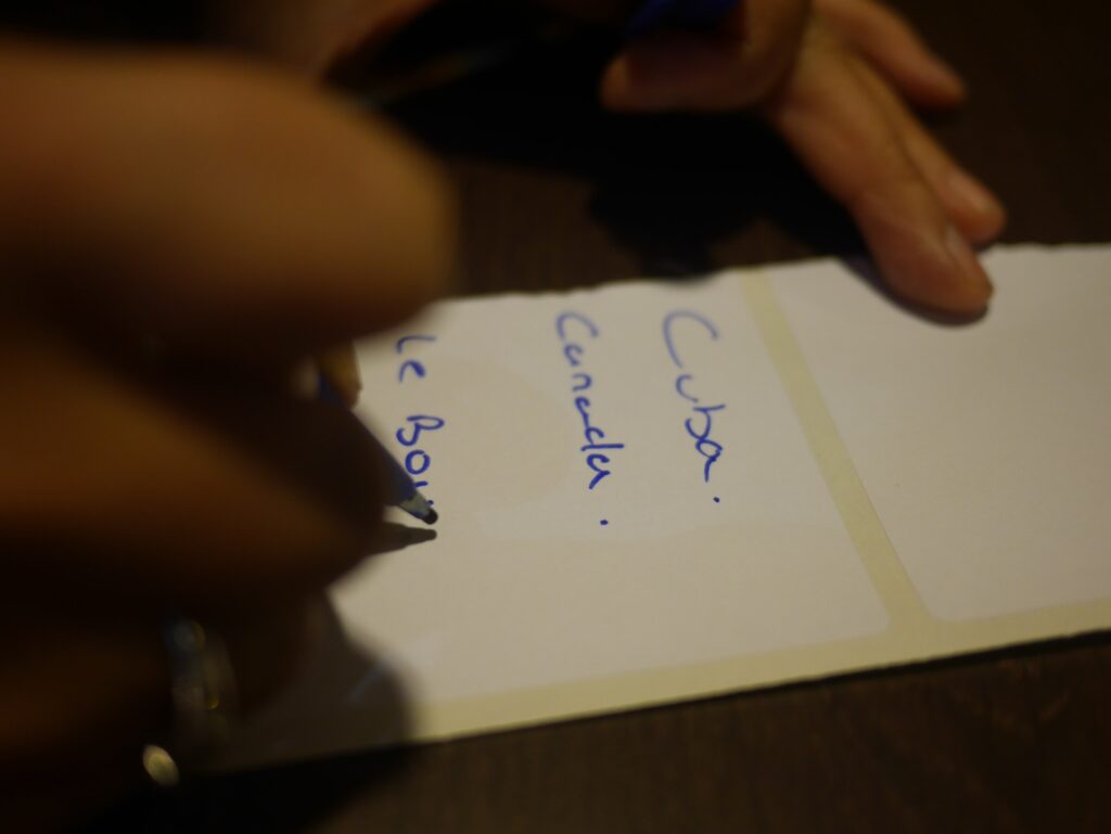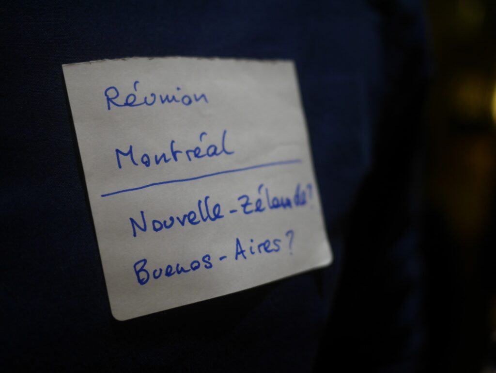 Si vous n’êtes pas encore venu à l’un de nos apéros, je vous explique en quelques mots. Chacun porte le soir de l’apéro une petite étiquette avec deux destinations qu’il connait, deux destinations qu’il aimerait connaître. Et son prénom.